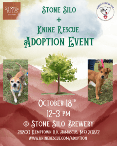 Join us at the beautiful Stone Silo for an adoption event! 12-3 pm Saturday October 18th.