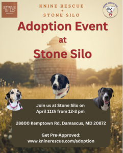 Join us at Stone Silo Brewery on April 11th from 12-3 pm for an adoption event!
