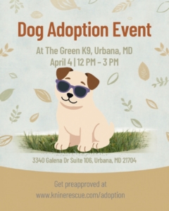 Join us at The Green K9 in Urbana on Saturday, April 4th from 12-3 pm for an adoption event!